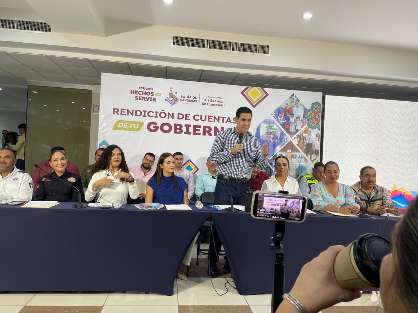 En esta Rendición de Cuentas, le dio un plazo de un mes, para que OROMAPAS, termine los trabajos del Acuaférico de Bucerías, eliminando con ello, que continúe llegando a las tomas de agua potable de la población agua salada.