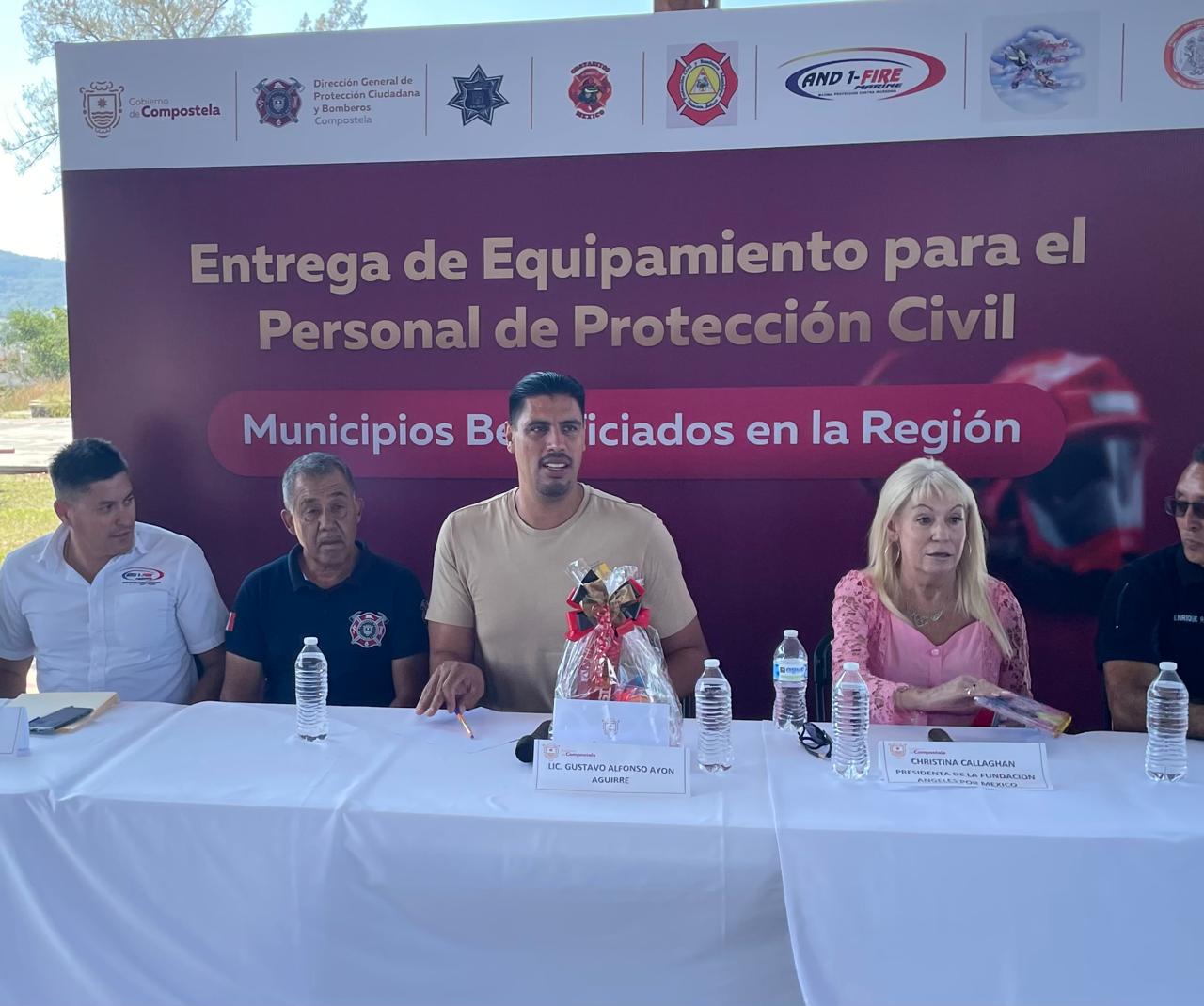 El presidente municipal de Compostela, Gustavo Ayón, le agradeció a Cristina el apoyo que le brindó con este donativo a Bomberos y a Protección Civil. Entregando un presente, acompañado de palabras de reconocimiento a su valiosa labor.