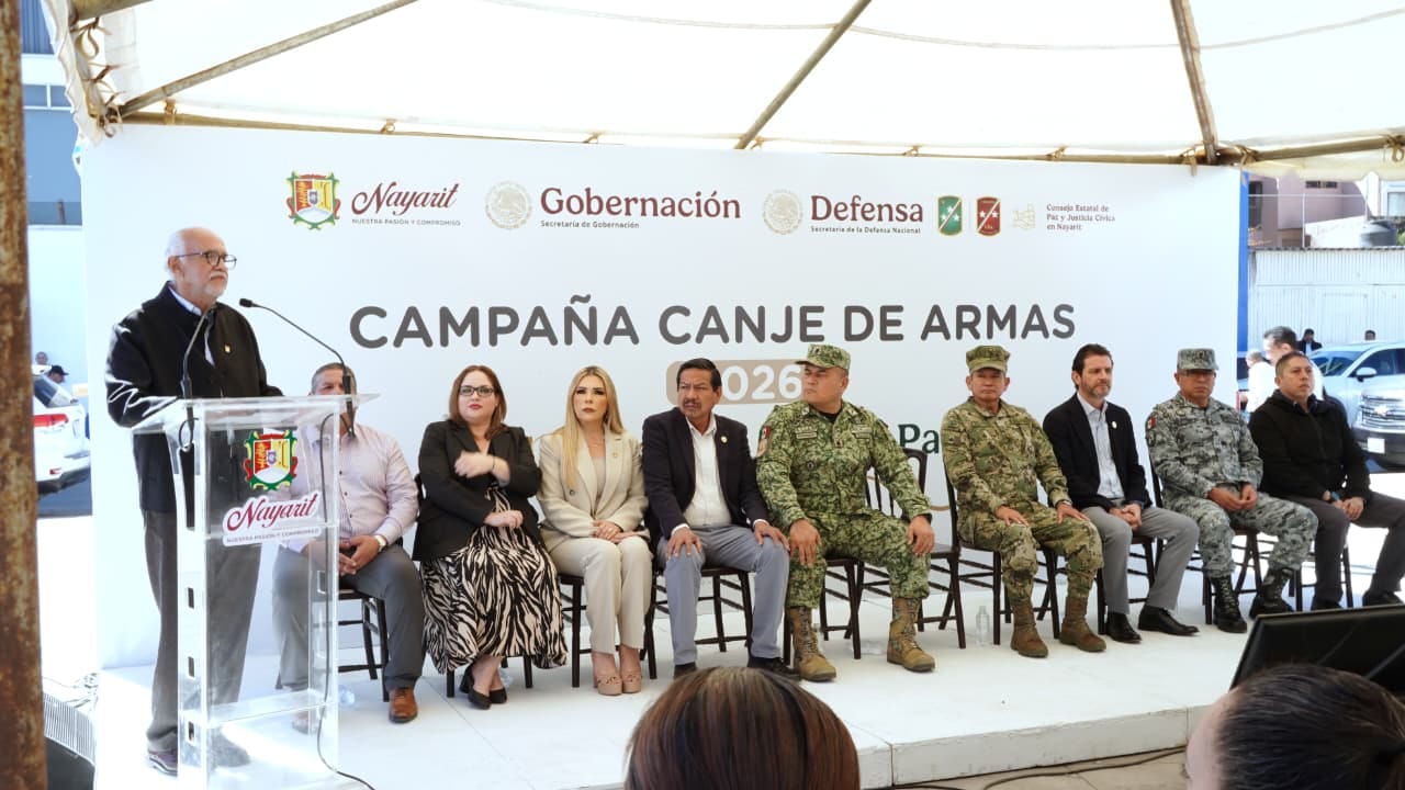 “Por instrucciones del gobernador del Estado, Miguel Ángel Navarro Quintero, se realizó en Nayarit, la Campaña de Canje de Armas 2026. Logrando un resultado muy positivo. Despertando el interés de ciudadanos, familias, de los medios de comunicación, como de la sociedad.” Literatura sobre el tema.