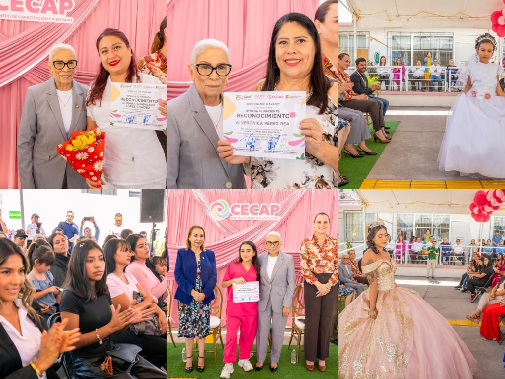 La presidenta del Sistema DIF Nayarit, doctora Beatriz Estrada Martínez, encabezó el acto de clausura de los cursos ordinarios de un año, así como de los cursos de 60 y 120 horas, impartidos en el Centro de Capacitación CECAP, en beneficio de mujeres y hombres que buscan seguir preparándose para construir un mejor futuro. La titular de la asistencia social destacó que esta preparación les permitirá alcanzar la independencia económica, ya que ahora cuentan con las herramientas necesarias para emprender y desarrollar sus habilidades.