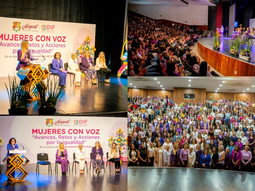 La presidenta del Sistema DIF Nayarit, doctora Beatriz Estrada Martínez, encabezó el evento Mujeres con Voz: “Avances, Retos y Acciones por la Igualdad”, que marca el inicio de las actividades con motivo del Día Internacional de la Mujer. Durante el acto celebrado en el Teatro del IMSS de Tepic, se destacó la importancia de continuar impulsando acciones que permitan a las mujeres ejercer sus derechos en igualdad de condiciones, y acceder a mejores oportunidades de crecimiento y bienestar.