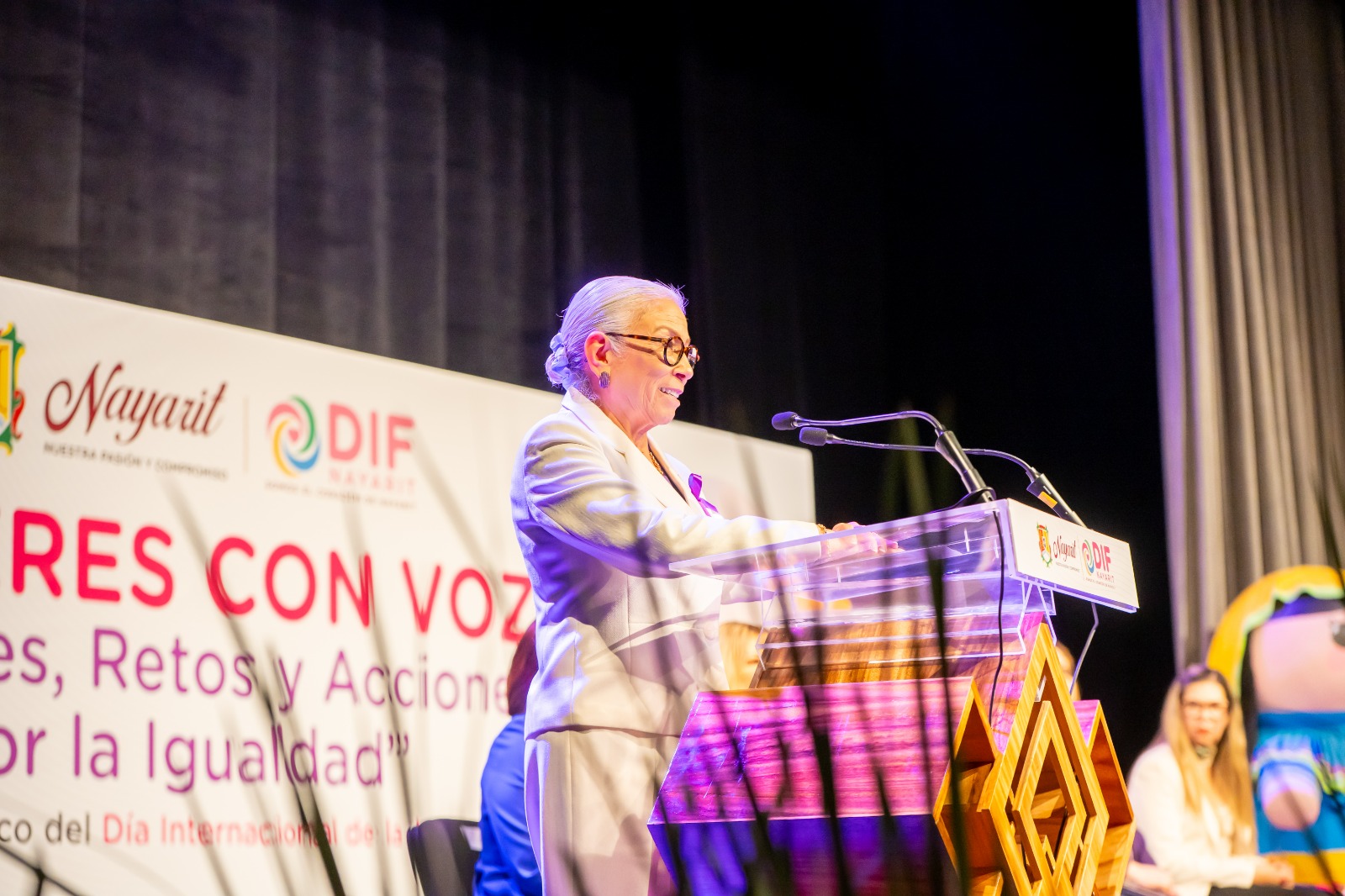 La presidenta del Sistema DIF Nayarit, doctora Beatriz Estrada Martínez, encabezó el evento Mujeres con Voz: “Avances, Retos y Acciones por la Igualdad”, que marca el inicio de las actividades con motivo del Día Internacional de la Mujer. Durante el acto celebrado en el Teatro del IMSS de Tepic, se destacó la importancia de continuar impulsando acciones que permitan a las mujeres ejercer sus derechos en igualdad de condiciones, y acceder a mejores oportunidades de crecimiento y bienestar.