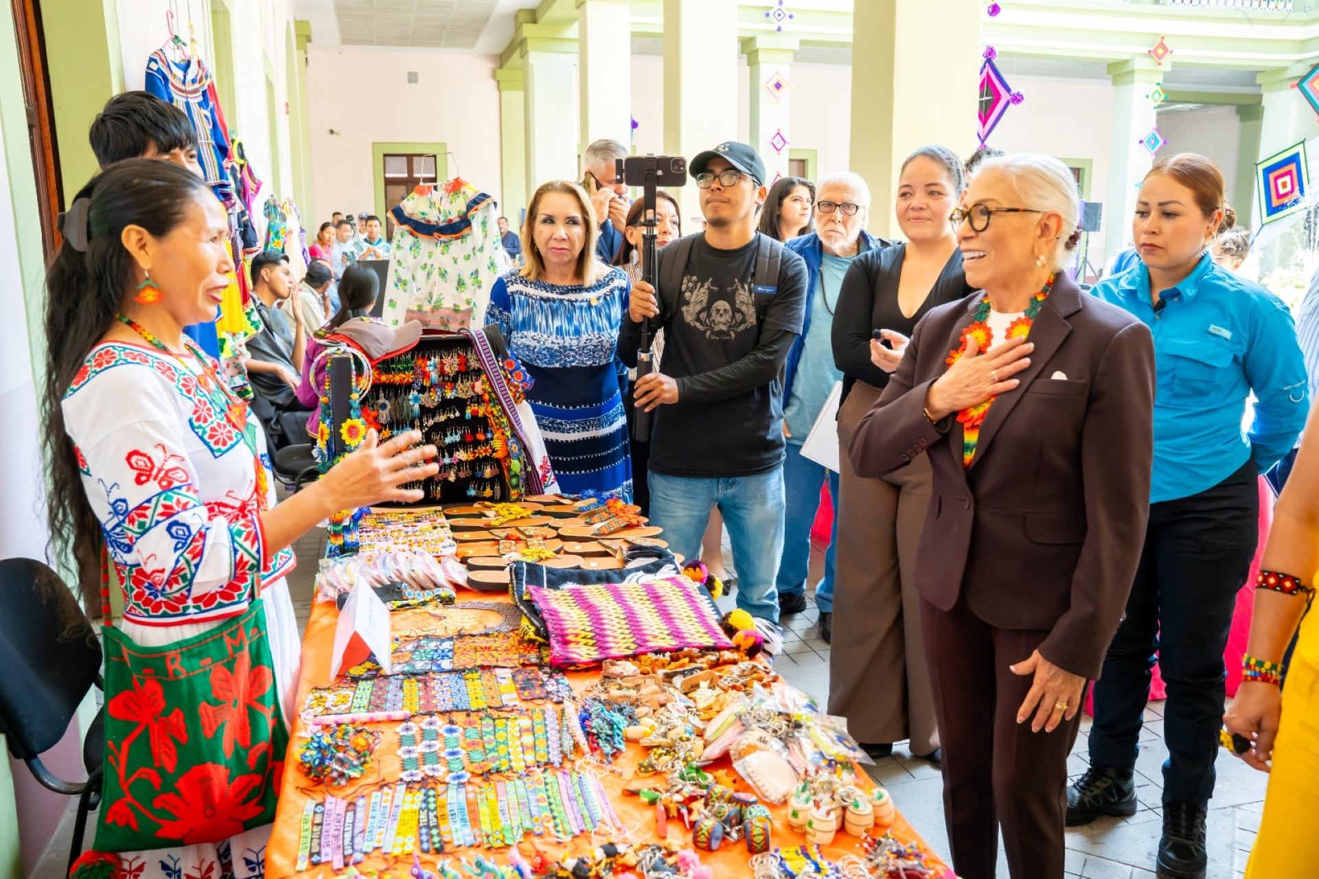 La presidenta del Sistema DIF Nayarit, doctora Beatriz Estrada Martínez, asistió este viernes como invitada especial a la Expo Venta realizada en el marco del Día Internacional del Artesano, en el Museo de los 5 Pueblos, con el objetivo de promover el trabajo de las y los artesanos nayaritas.
