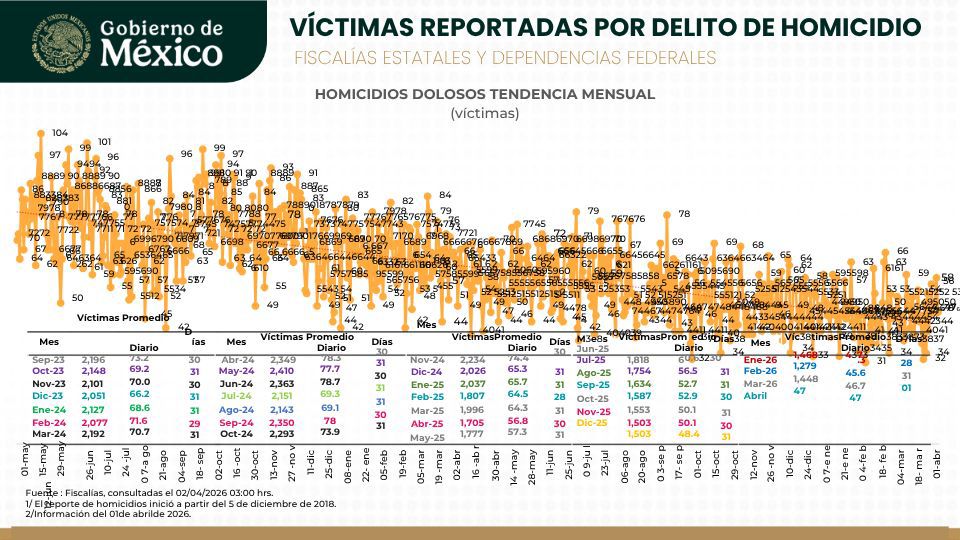 Este resultado forma parte del seguimiento diario que realizan las fiscalías estatales y dependencias federales, y refleja la coordinación entre autoridades de los tres órdenes de gobierno en la implementación de estrategias de seguridad.